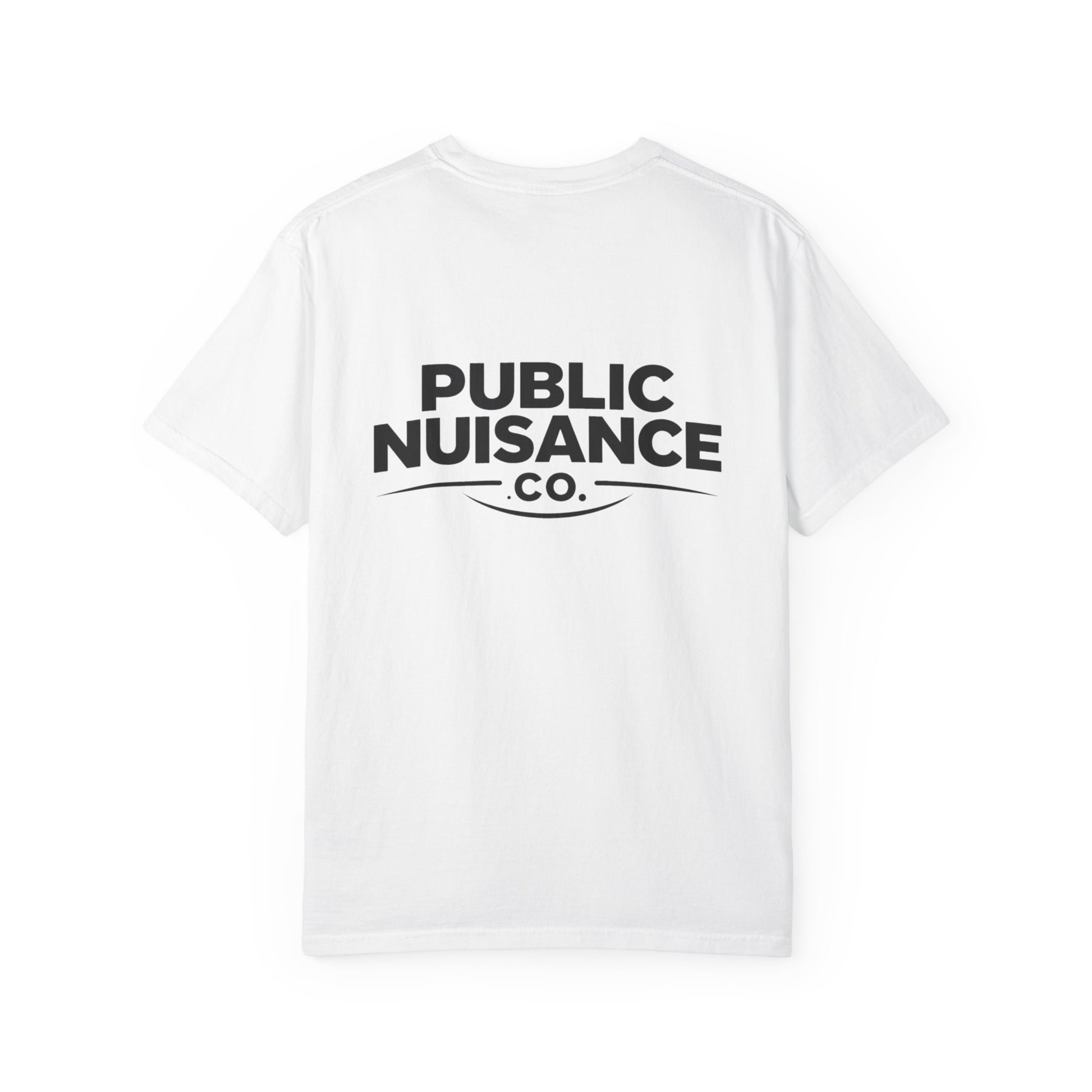 This garment-dyed tee leans fully into public nuisance humor — the kind that gets a double take, a smirk, or a quiet “nahhh.” The bold, tongue-in-cheek statement reads like an inside joke you weren’t supposed to say out loud, making it perfect for wearing out where it doesn’t quite belong. With its relaxed, broken-in feel and soft vintage color from the garment-dye process, it looks effortless while doing just enough to stir the room. Whether you’re out with friends, posted up late, or just showing up for no reason at all, this shirt lets the joke land without you having to explain it.